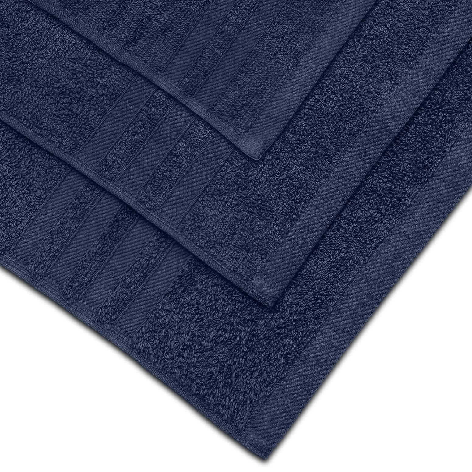 3.versatile sizes for various needs: our navy bathroom set offers a variety of towel sizes to meet all needs. two bath towels provide generous coverage, four hand towels for drying hands or face, and six washcloths for versatile tasks. with this range of sizes, these navy towels ensure you have the perfect towel for every occasion, personal use, or guest accommodation. experience convenience and versatility with our navy bathroom set.