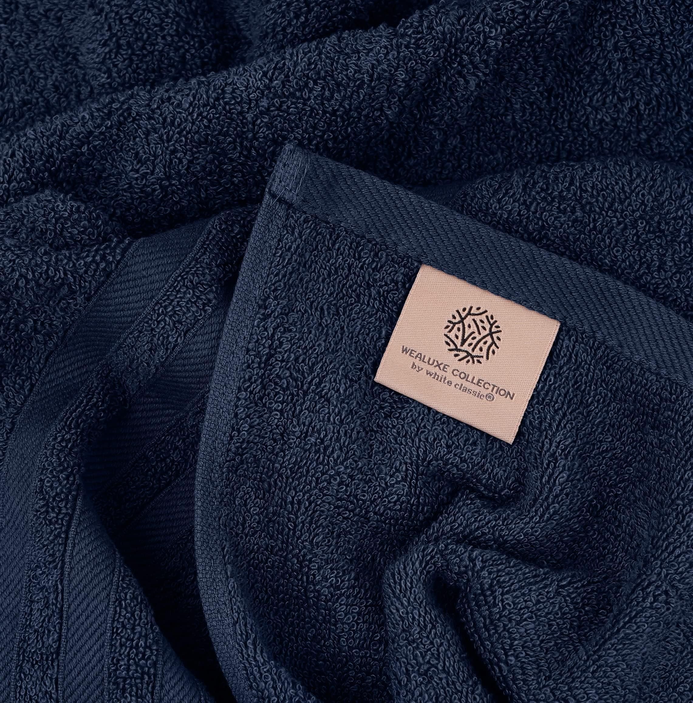 5.elegant and timeless design: transform your bathroom into a serene sanctuary with our wealuxe 12 pc bathroom set in navy. the classic and timeless design, coupled with the deep navy color, adds sophistication and elegance to your decor. whether your style is modern or traditional, these towels effortlessly complement any design. the refined design and navy hue enhance the visual appeal of your space, creating a stylish atmosphere.