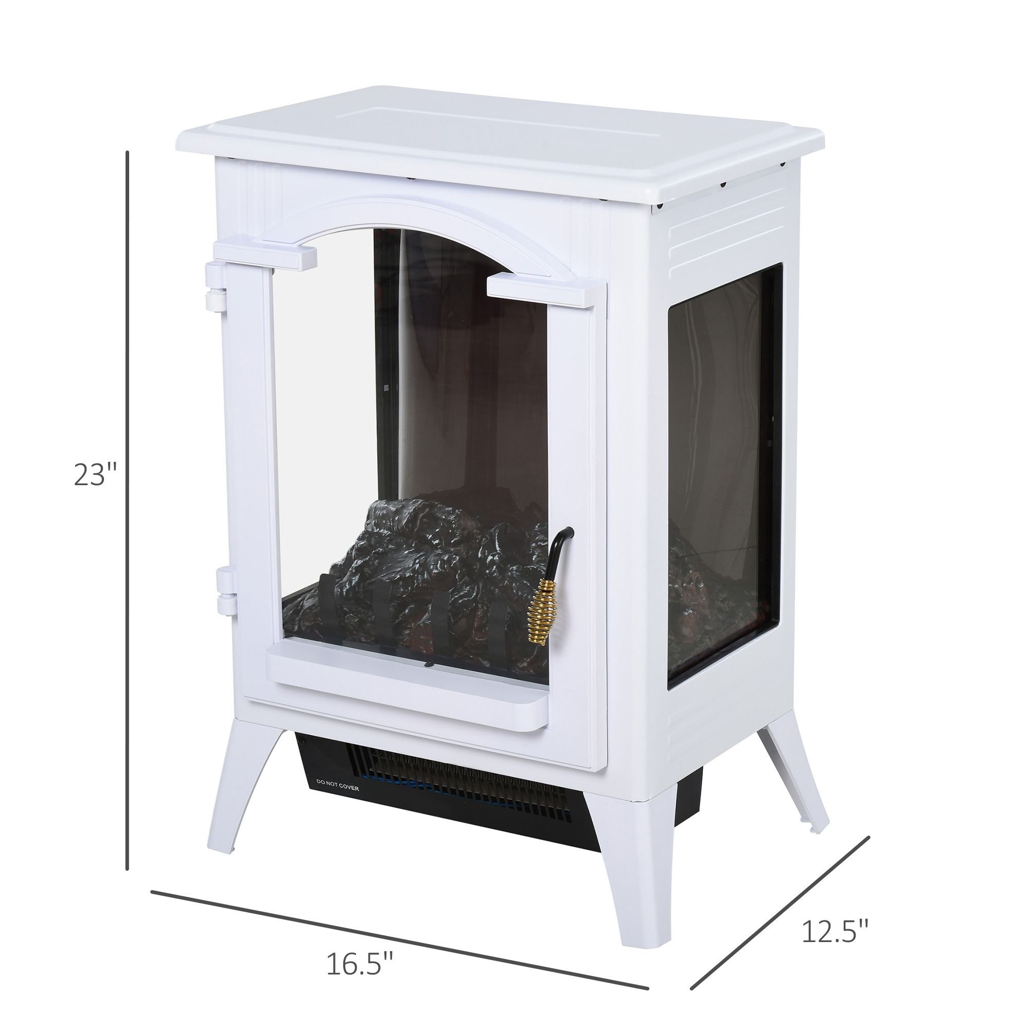 23" Electric Fireplace Heater, Fire Place Stove with Realistic LED Flames and Logs and Overheating Protection, 750W/1500W, White