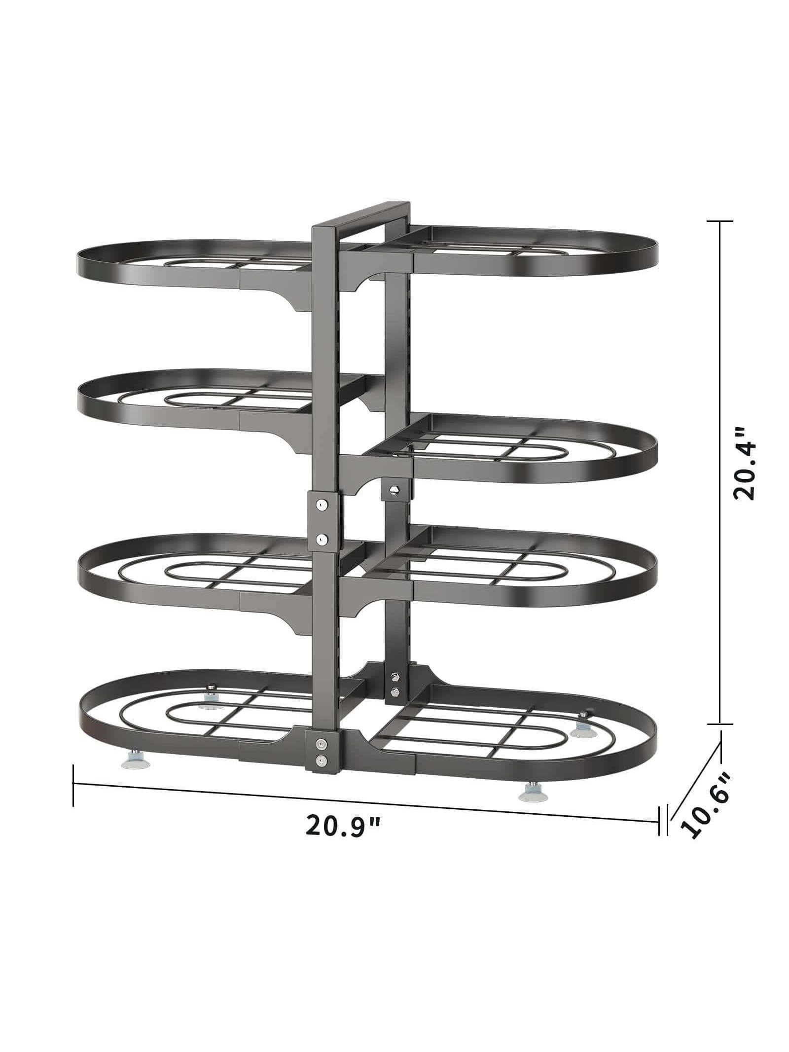 [Adjust the Height As Needed] You can adjust the height of each tier of the pot and pan organizer for cabinet so you don't need to worry about the shelves not having enough space to fit your pots. Before purchasing, measure your cabinet size and read the product dimensions carefully to make sure our adjustable pan organizer fits inside your cabinet. Please refer to the product pictures for more detailed dimensions