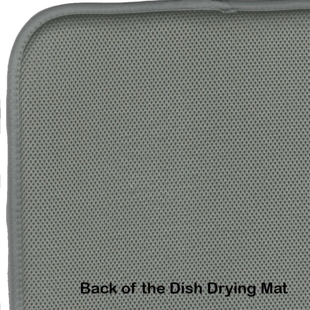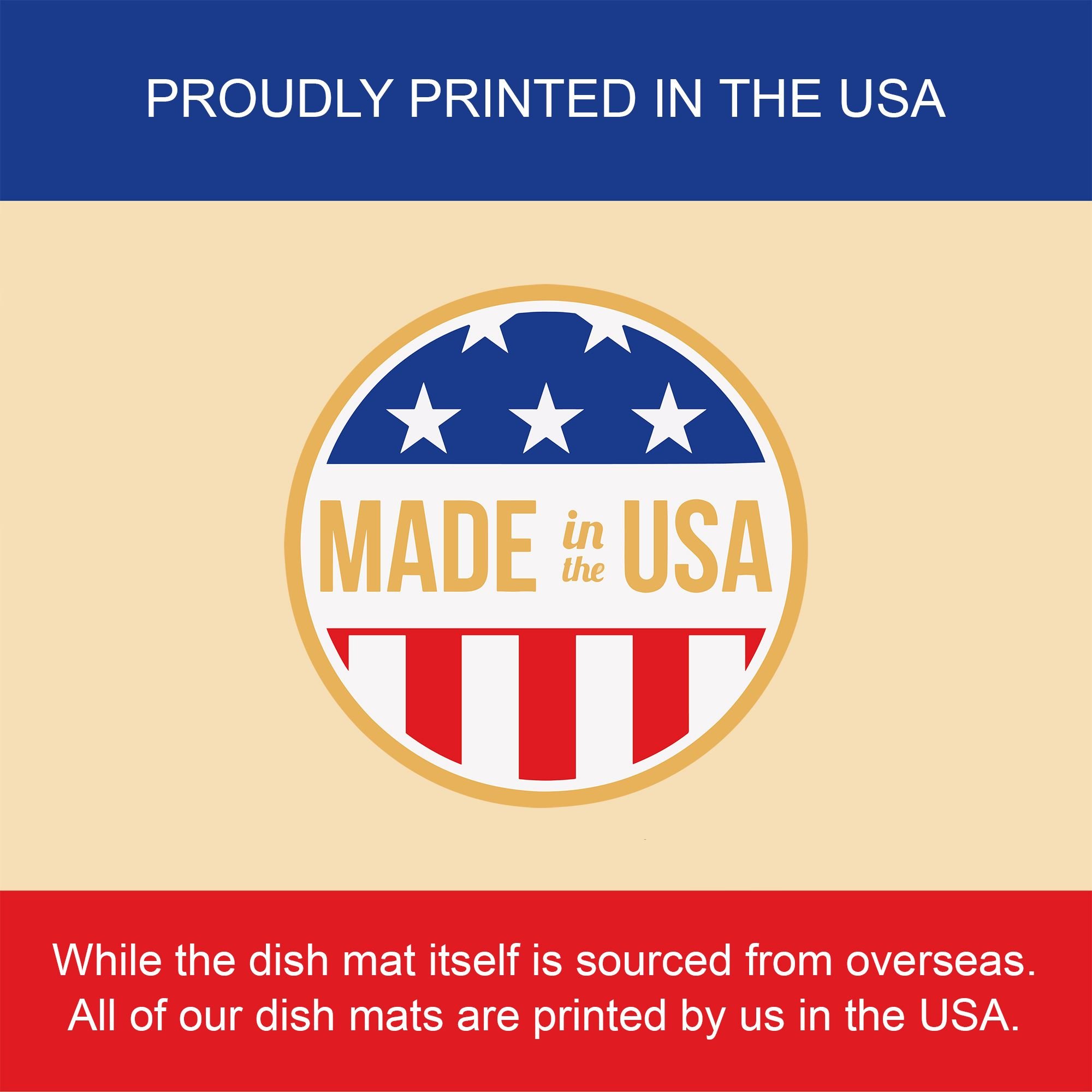 Dish Drying Mat featuring breed specific Chicken artwork. Say goodbye to messy countertops and soggy dish towels with our innovative dish drying mat. Our high-quality dish drying pad is designed to keep your countertops dry while offering a stylish and efficient solution. Whether you're air drying dishes, glasses, stemware, silverware, pots, pans, bottles, or even fruits and vegetables, our dish mat is the perfect choice. The 14 inches x 22 inches size fits most counters and dish drying racks, and the non-slip design ensures stability. Made with water-absorbent polyester and a polyurethane foam insert, our dish drying mat is not only functional but also durable. It's machine washable and printed in the USA for long-lasting use. The beautiful artwork adds flair to your kitchen decor, making it a perfect housewarming gift or present for any occasion. Upgrade your kitchen experience with our absorbent and versatile dish drying mat.