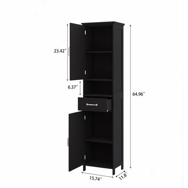 Home > Double Door Narrow Height Slim Floor Standing Cabinet with 2 Adjustable Shelves-Black