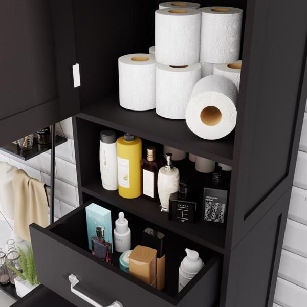 Multifunctional cabinet: It is not just for the bathroom. Besides using it as a bathroom cabinet to store toilet paper or skin care products, you can also put it in your entryway to store supplies you need when you're out and about, or in your study to store books and magazines, etc.