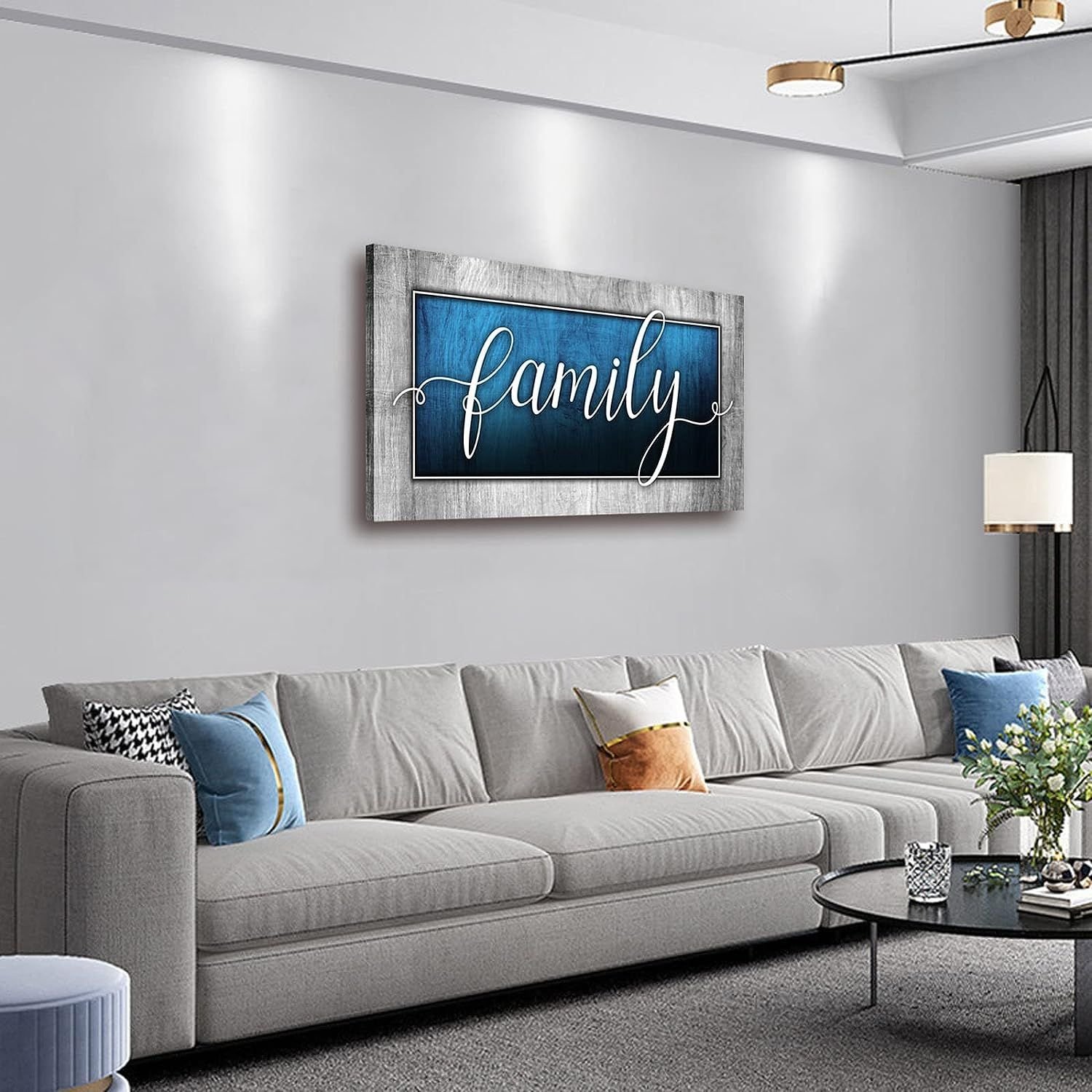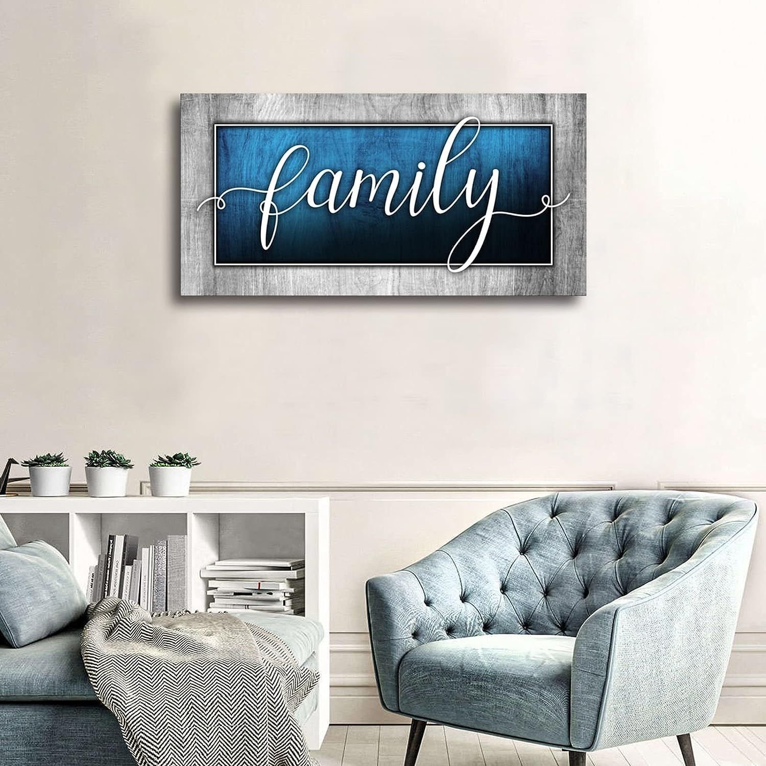 Home > Family Canvas Wall Art-Navy Blue Family Wall Decor-Family Word Sign Canvas Prints Picture Painting Modern Artwork for Bedroom Living Room Home Decorat