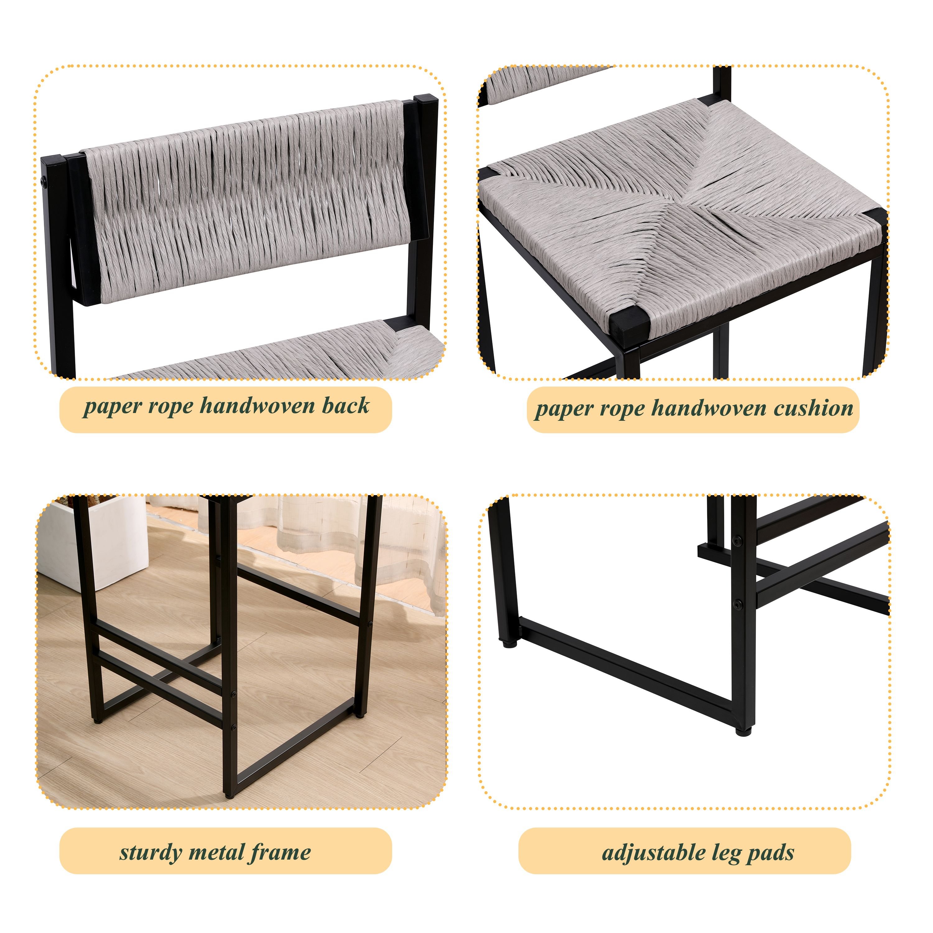 Durable & Reliable: Our kitchen stool boasts a sturdy black metal frame and woven natural paper rope seat, both of which are built to last. The anti-slip screws ensure stability and long-lasting use.