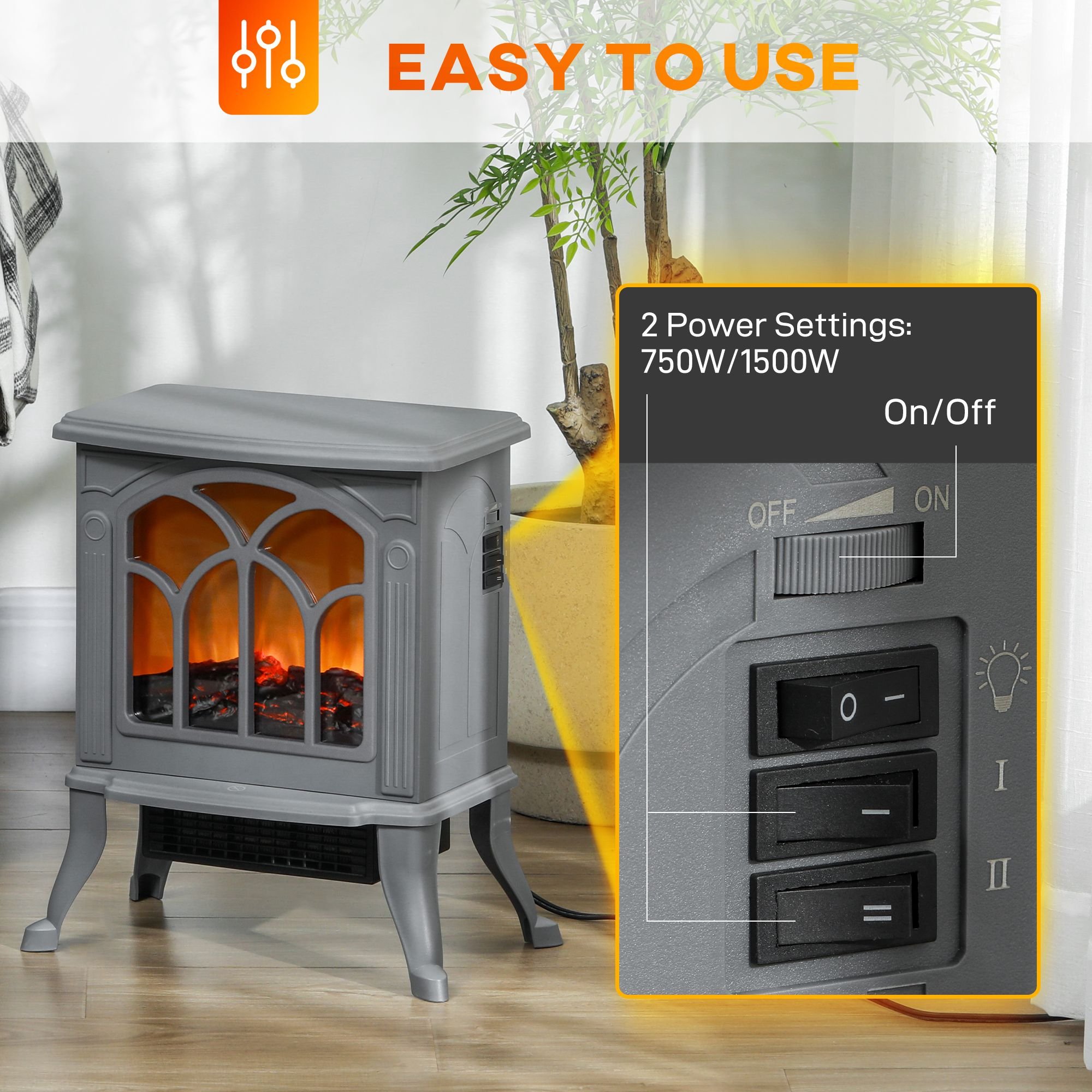Home > HOMCOM 17" Freestanding Electric Fireplace Stove, Fire Place Heater with Realistic Logs and Flame Effect and Overheat Protection, 750W/1500W, Gray