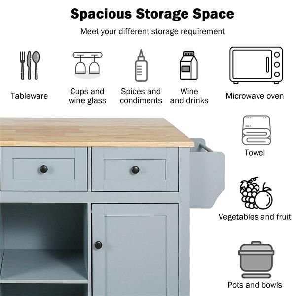 Kitchen Cart with Rubber wood Drop-Leaf Countertop ,Cabinet door internal storage racks