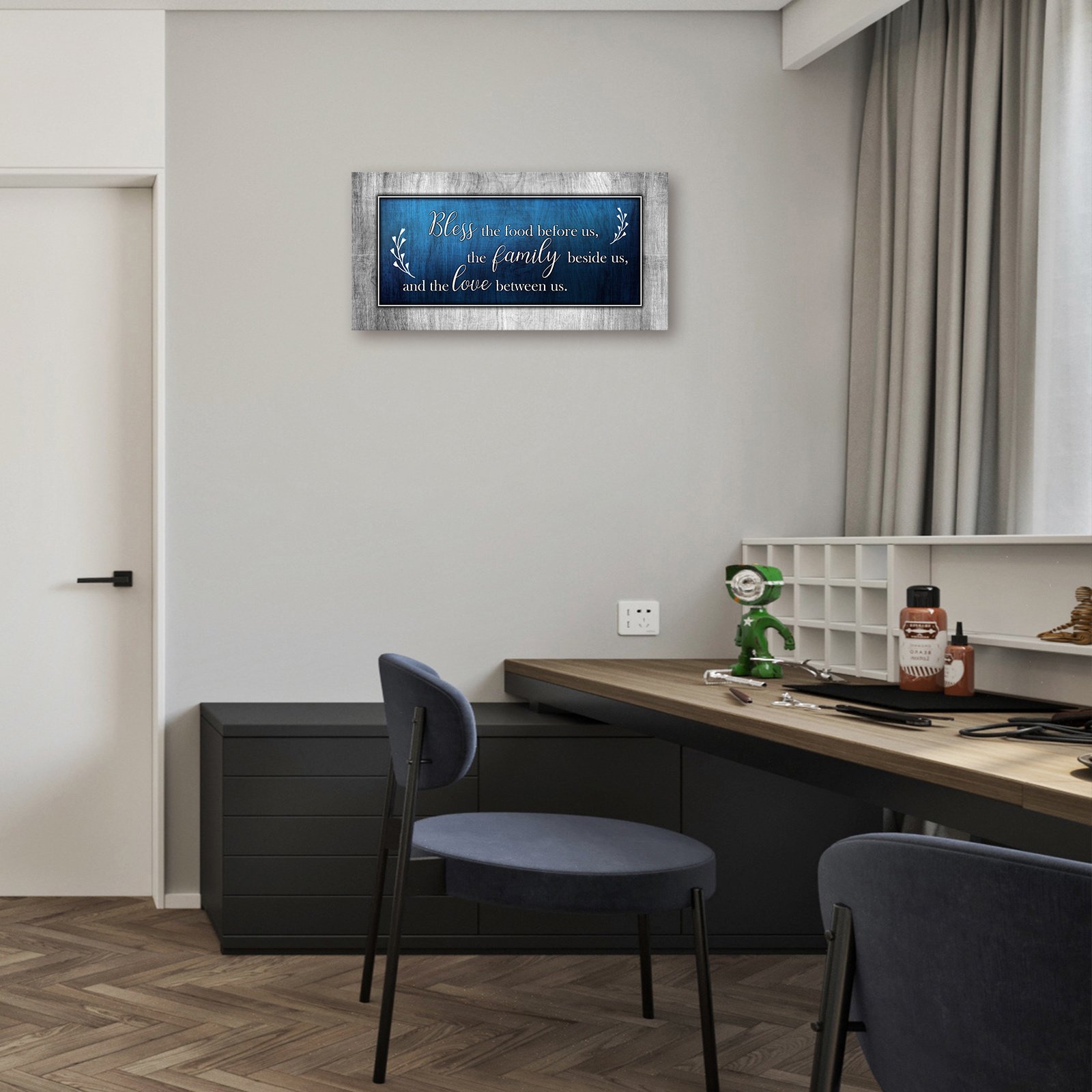 Home > Christian Wall Art Decor Blue and Grey Canvas Prints Bless The Food Quote Wall Pictures Framed Artwork for Home Living Room Dining Room Kitchen Decora