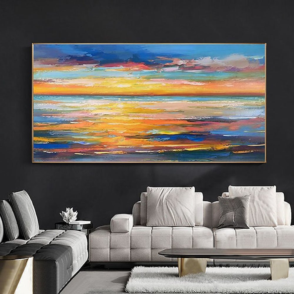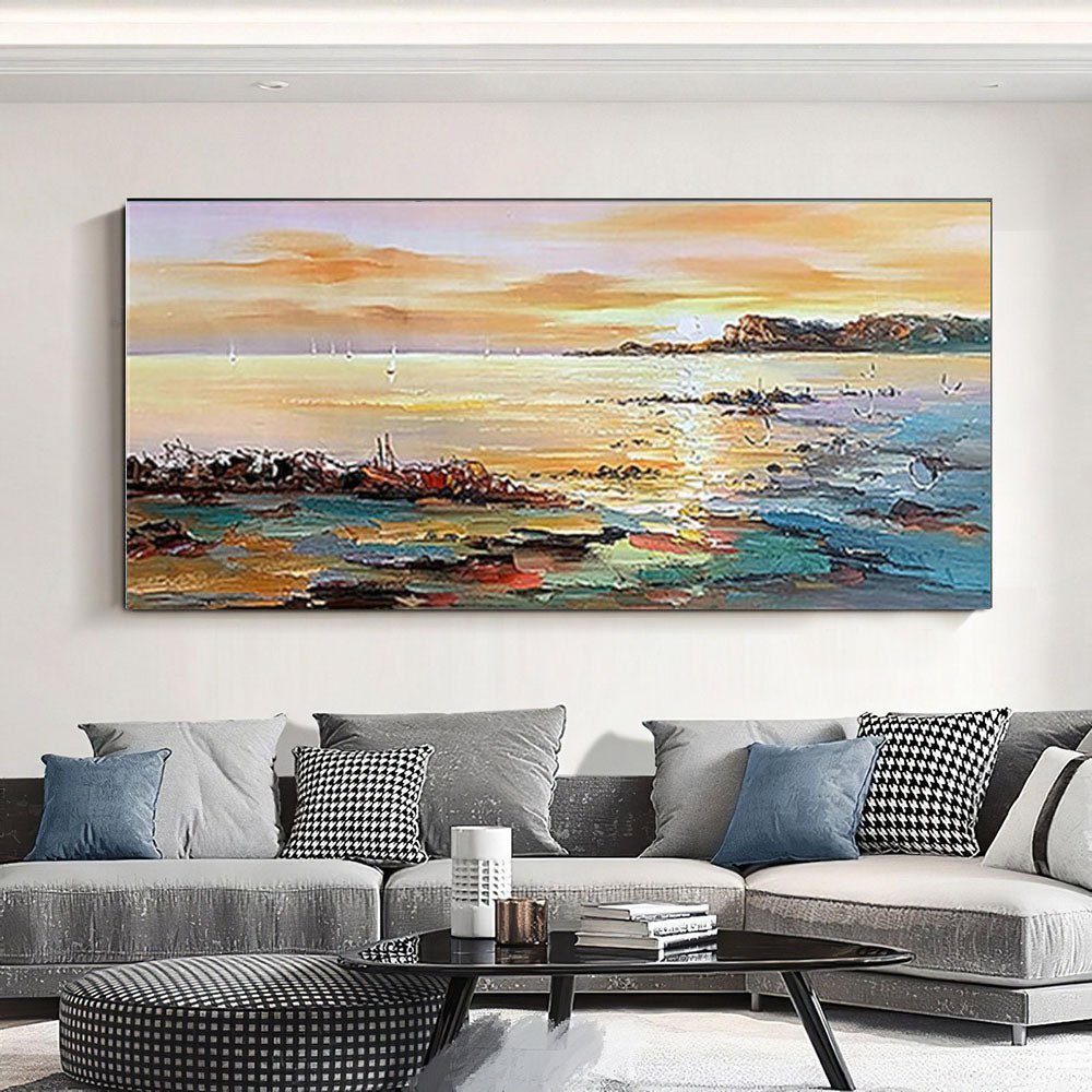 Home > Hand Oil Painting Canvas Wall Art Decoration Abstract Seascape Painting Colorful Seaside Sunset for Home Living Room hallway bedroom luxurious decorat