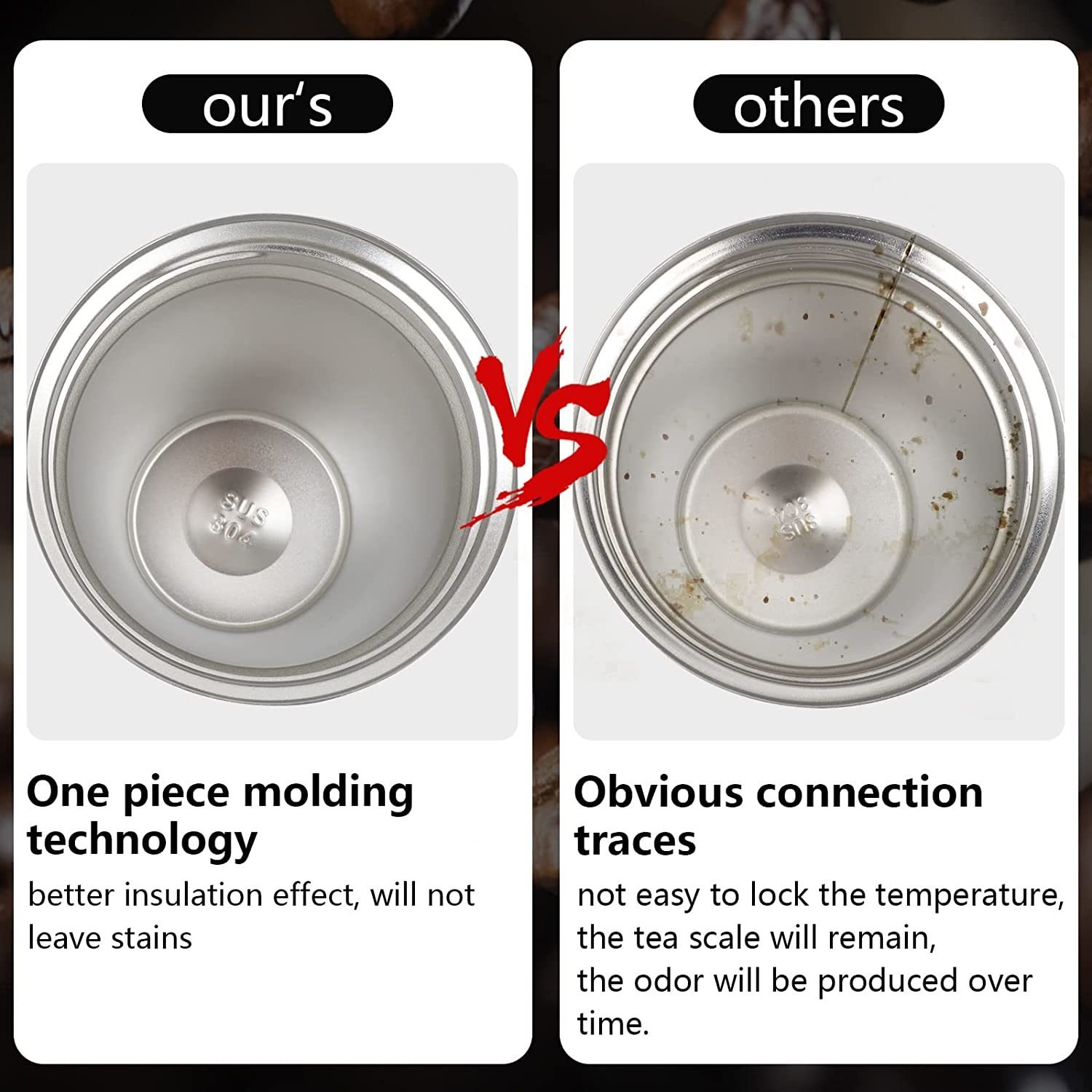 Healthy Material - The Vacuum double wall was made of high quality grade 304 stainless steel that completely taste-free; rust-proof; leak-proof; The lid was made of food-grade silicone; BPA free; guaranteed high durability.