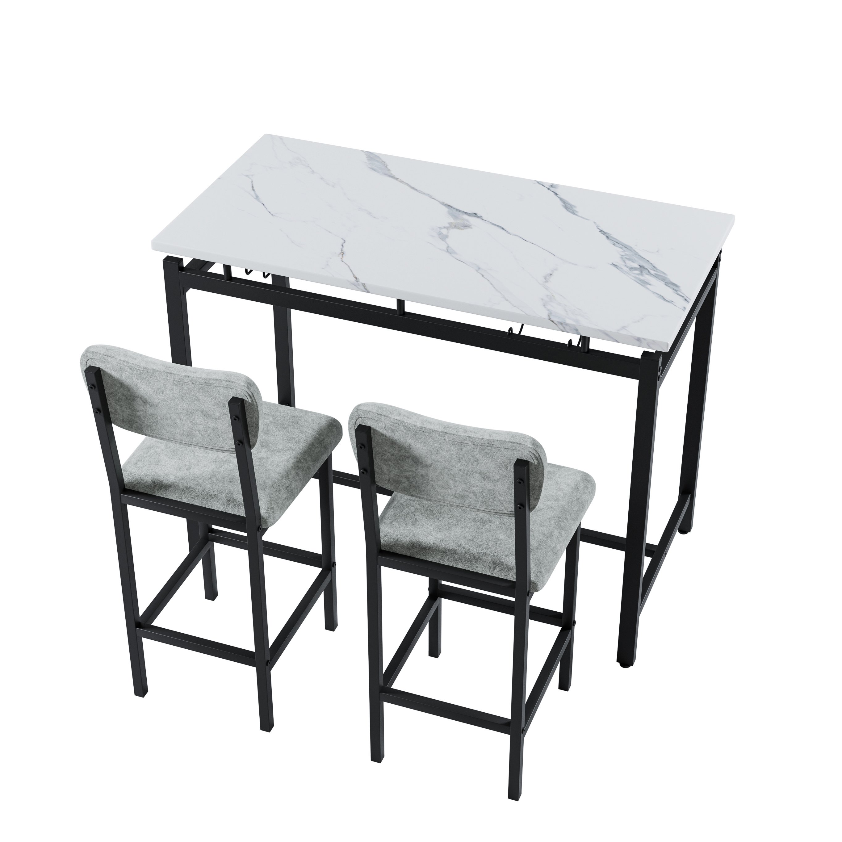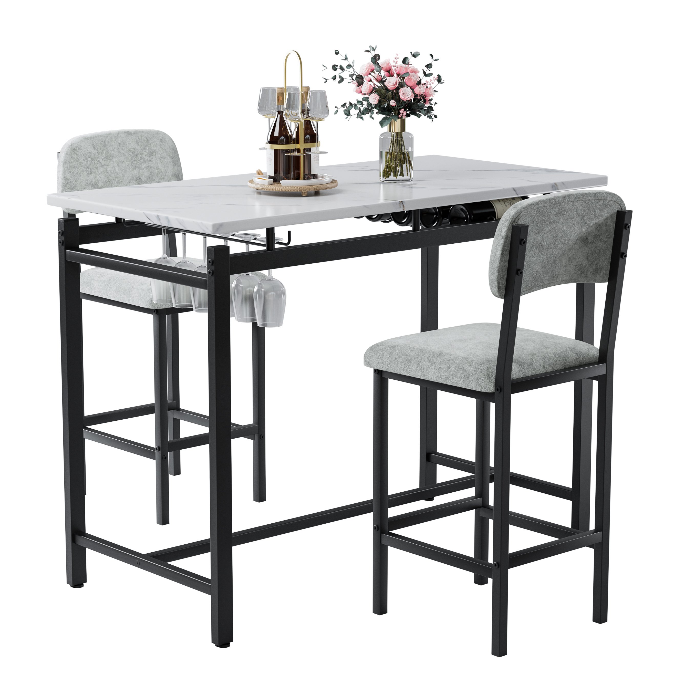 2.SPACE-SAVING COMPACT DESIGN: 2 high dining chairs can be hidden under the bar kitchen table to save space and create a tidy atmosphere. It is an excellent solution for small spaces, such as condos, kitchens, studios, pubs, or apartments.