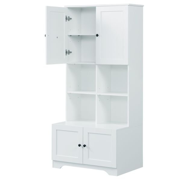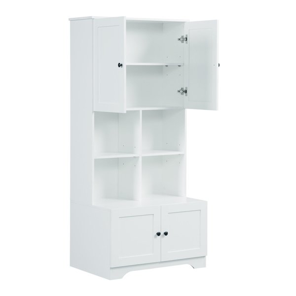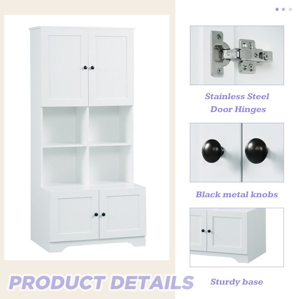 Plenty of Storage: This bathroom cabinet features an upper and a lower cabinet and four separate open storage compartments to provide ample space for your hairdryer, towels, cosmetics, shower items, and more.