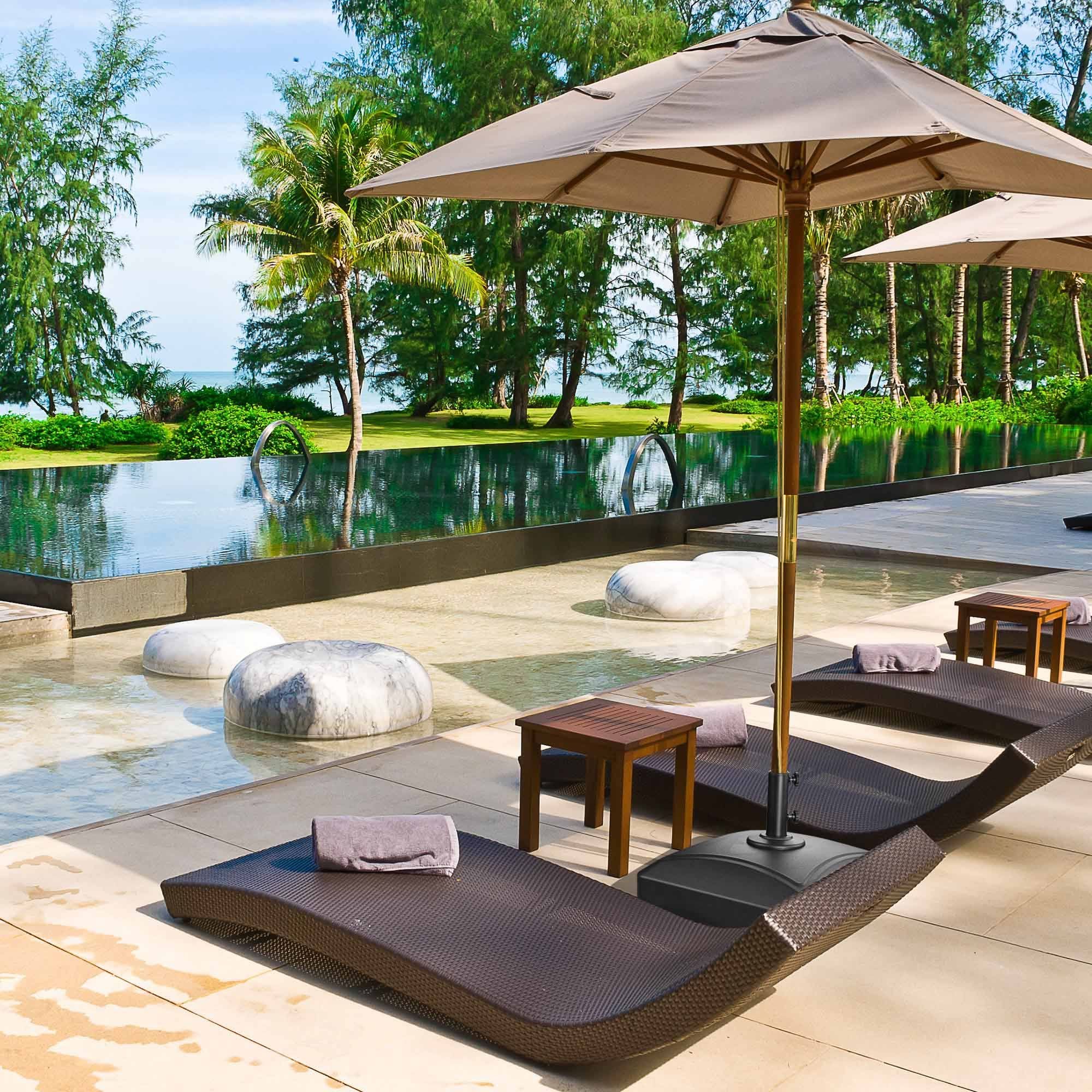 - 2 Weighted Methods - Fillable design allows you to increase its weight by adding water or sand into the umbrella base; weighing a maximum of 88 Lbs when filled with water or 143 Lbs when filled with sand to provide a stable & strong support for the umbrella; essential accessory for holding your umbrella on the beach or poolside on sunny or rainy days